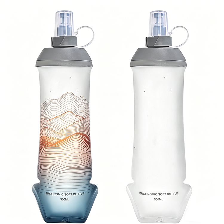190ml 250ml 300ml 350ml 420ml 500ml 600ml, multiply color selection, Customize brand soft flask, printing logo water bottle in Eco-friendly TPU 0.3mm material. Silicon bite Valve , drink tube with cover. it can be printed logo on the cover.
